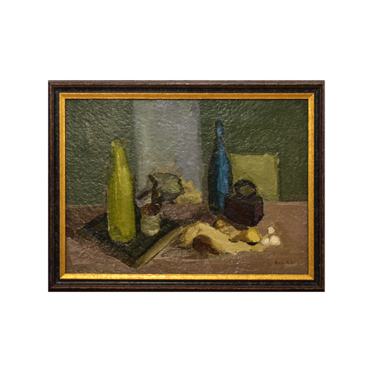 Ana Asvadurova Ciucurencu – Natura moarta cu doua sticle, ulei pe carton