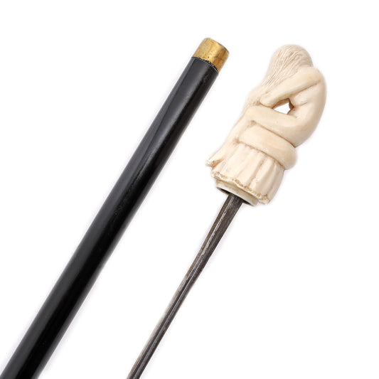 Baston cu stilet si maner din fildes sculptat – Venus Pudica
