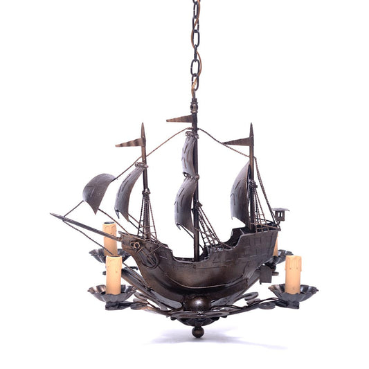 Lustra corabie din fier forjat patinat, Europa, sec. XX