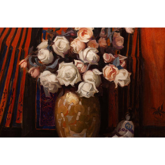 Mario Ledda – Trandafiri in decor japonizant, ulei pe panza, 1921