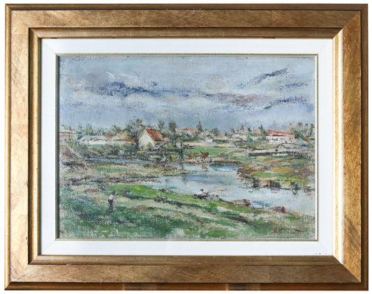Richard Canisius – Peisaj cu case, ulei pe carton, pictura moderna