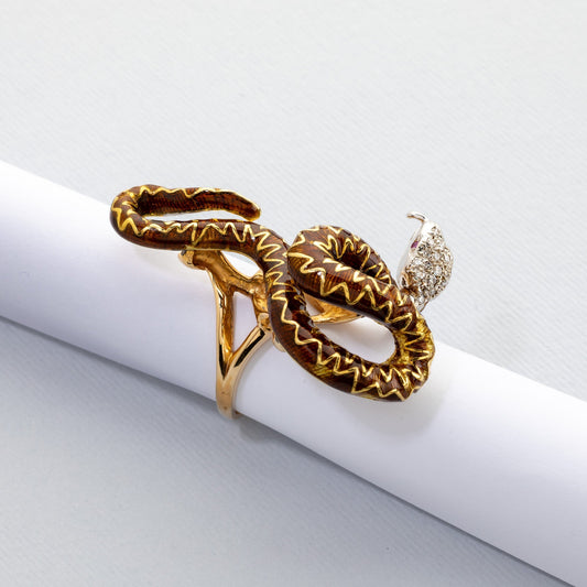 Inel din aur 14k cu diamante si rubine naturale, decorat cu email