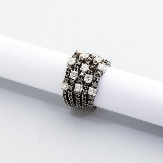 Inel din aur galben 18k cu diamante naturale albe si negre
