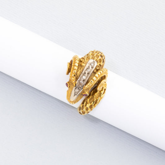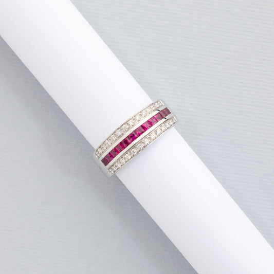Inel din aur galben si alb 18k cu rubine si diamante naturale