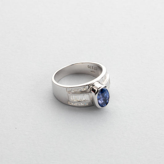 Inel Valente cu safire naturale si diamante naturale, aur alb 18k