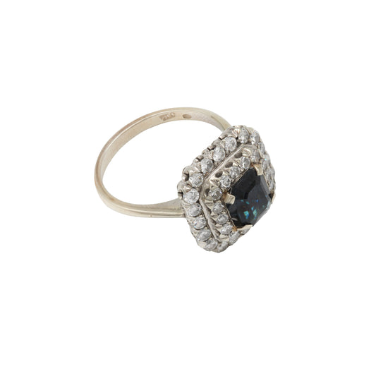 Inel din aur alb 18k cu safir Emerald Cut si diamante naturale