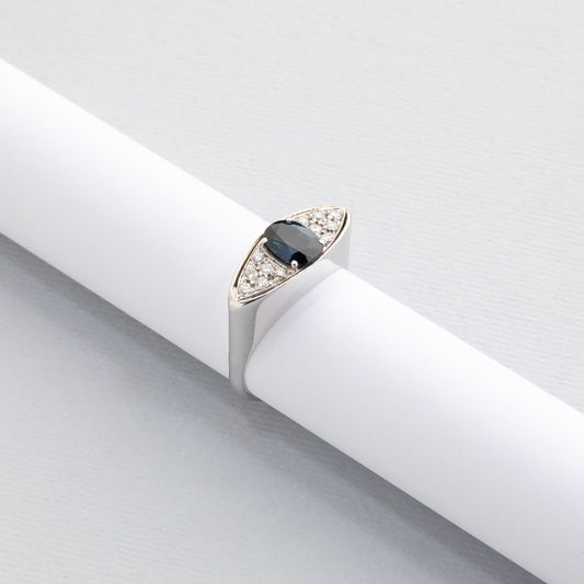 Inel cu safir natural si diamante naturale, aur alb 18k