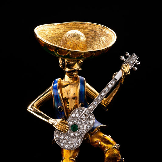Brosa/Statueta/Pandantiv Damiani din aur 18k cu smarald si diamante naturale