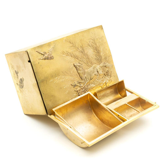 Cutie pentru tutun, bronz dore si lemn, decor vanatoare, sec. XIX