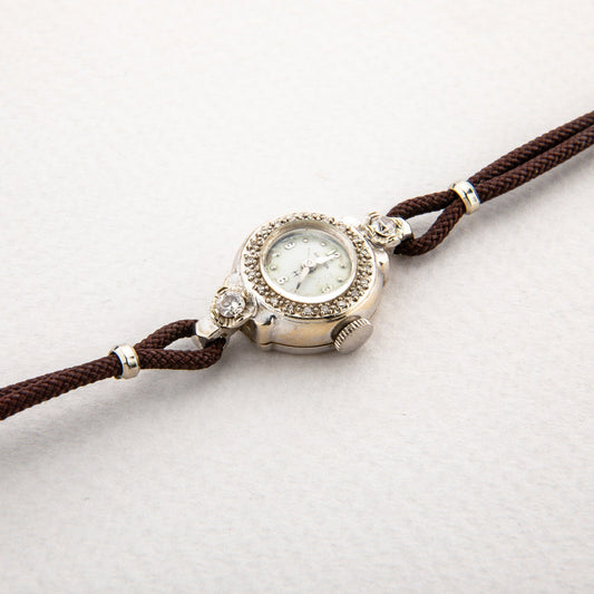 Ceas de dama vintage Hamilton din aur alb 14k cu diamante naturale