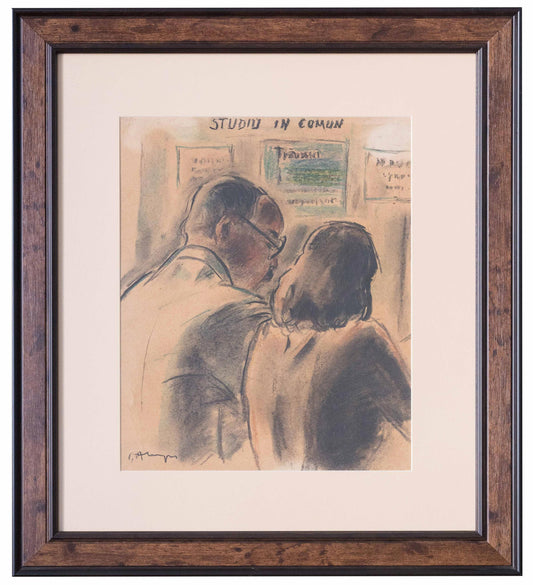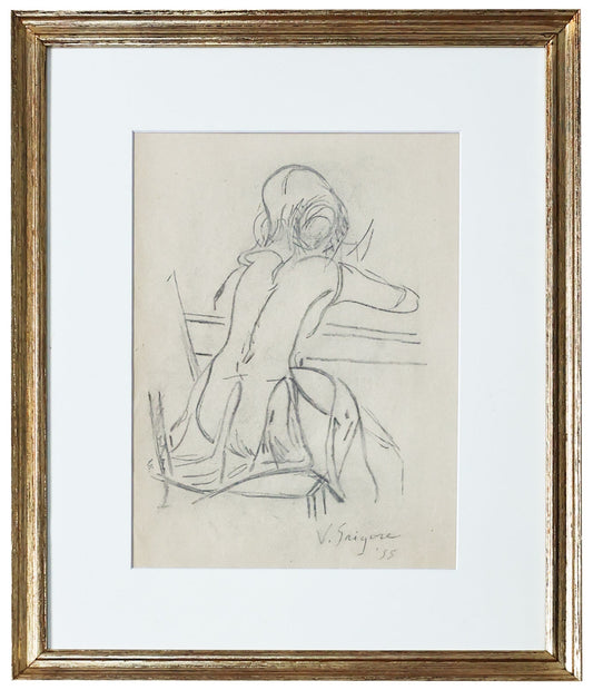 Vasile Grigore – Lectura, desen in creion, lucrare semnata '55