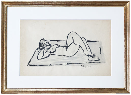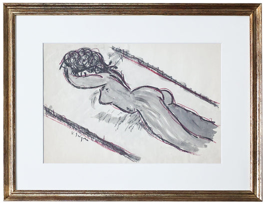 Vasile Grigore – Nud culcat, tehnica mixta, lucrare semnata
