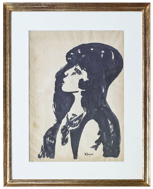 Vasile Grigore – Portret de Femeie, tus pe hartie, lucrare semnata