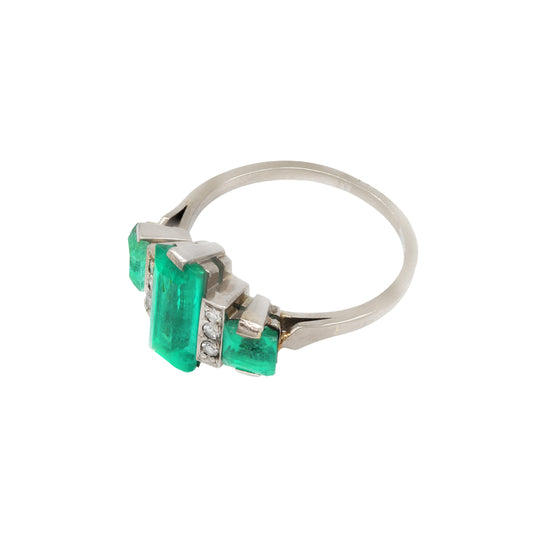 Inel cu smaralde naturale si diamante naturale, aur alb 18k