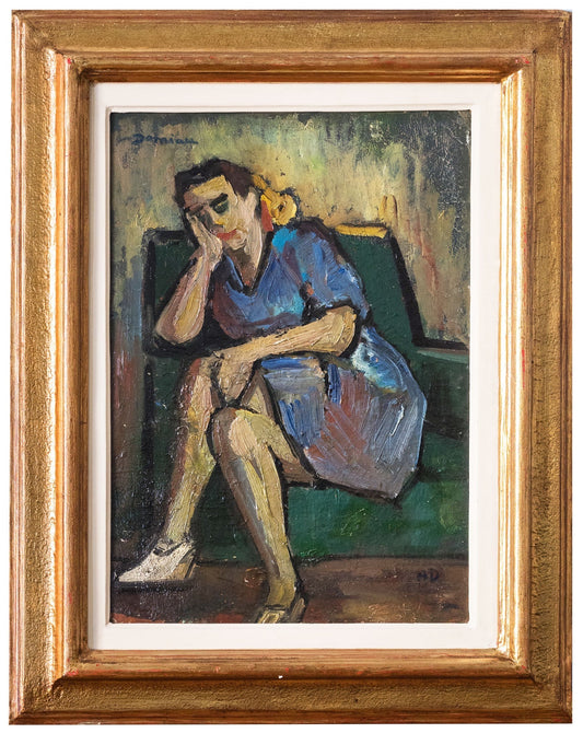 Horia Damian – Femeie pe Ganduri, ulei pe carton
