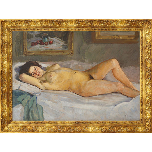 Apostol Manciulescu – Odalisca pe canapea, ulei pe carton