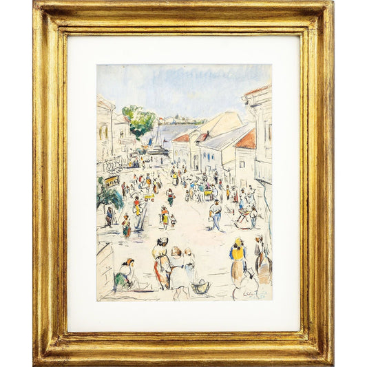 C. C. Constantinescu (Ali Baba) – Zi de targ la Tulcea, desen si acuarela