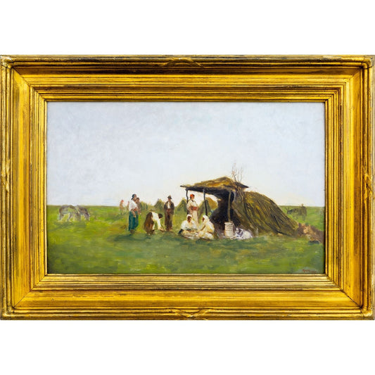 Nicolae Petrescu Mogos – Odihna la camp, ulei pe carton