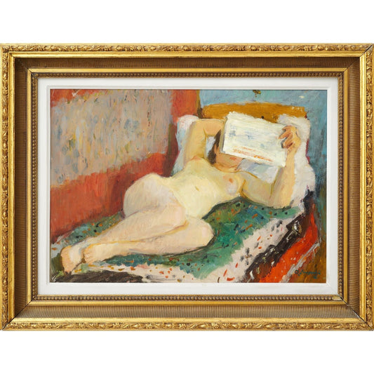 Octavian Angheluta – Nud feminin pe divan, ulei pe carton