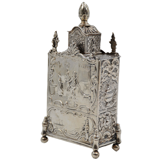 Cutie pentru ceai din argint, decor olandez, sec. XIX